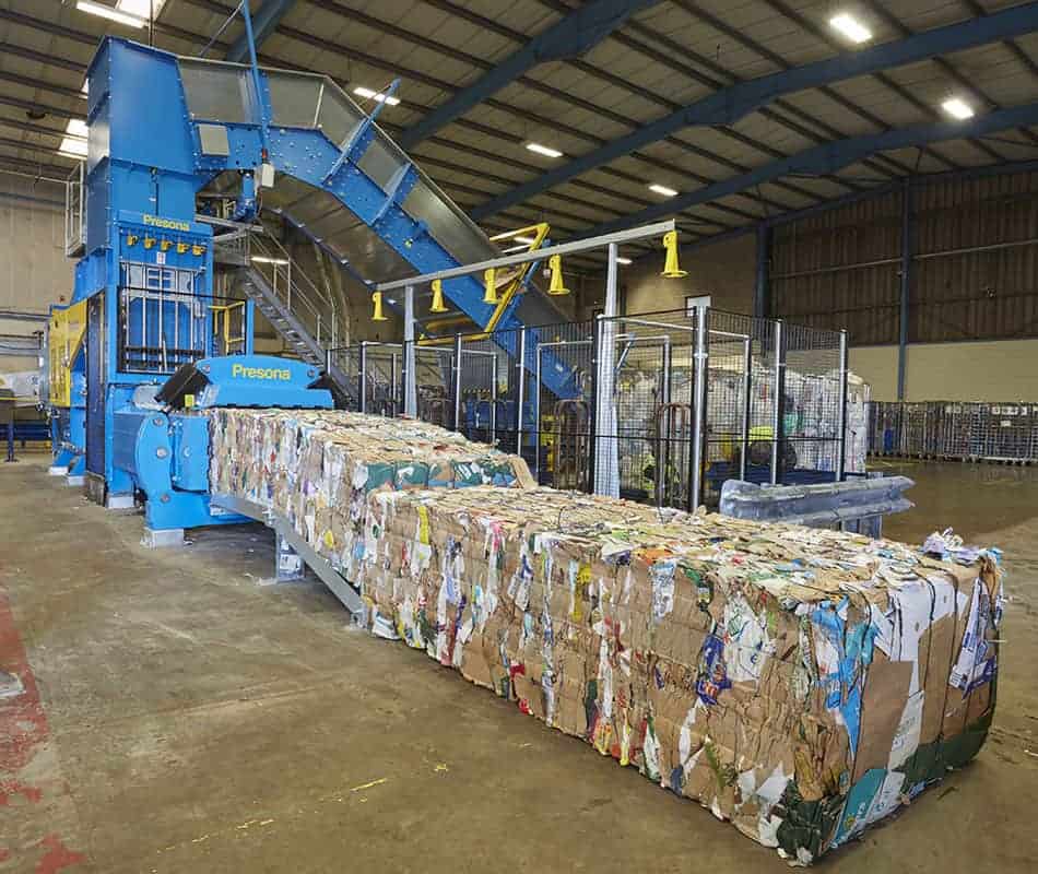 The custom-built baler was designed by the Presona UK team and incorporates a bespoke feeding conveyor, a stand-alone control panel giving online access to production and performance data, and a frequency control system to optimise energy consumption.